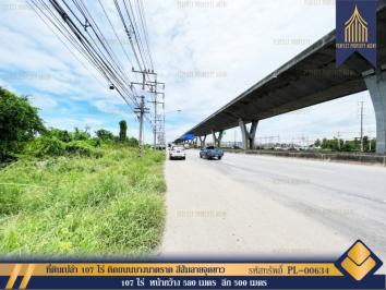 ขาย ที่ดินเปล่า 107 ไร่ ติดถนนบางนาตราด สีส้มลายจุดขาว ใกล้แม่น้ำบางปะกง