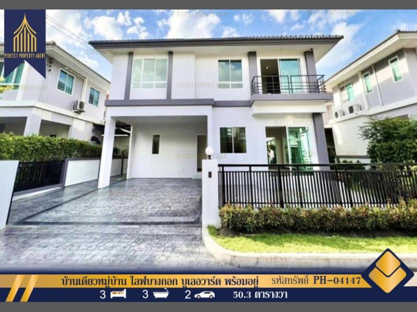 บ้านเดี่ยวหมู่บ้านไลฟ์บางกอกบูเลอวาร์ดพร้อมอยู่ตกแต่งใหมาเดินทางสะดวกสบาย