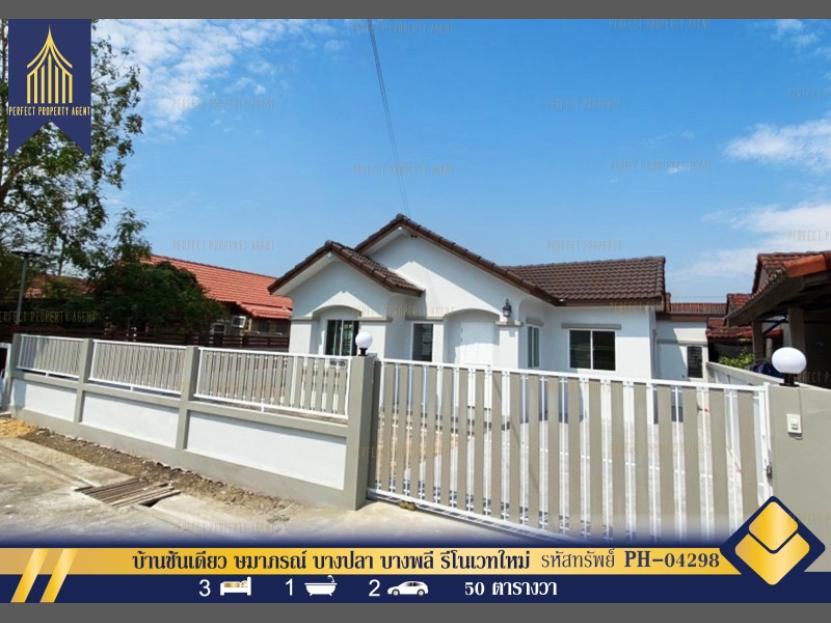 ขายบ้านชั้นเดียว ษมาภรณ์ บางปลา บางพลี รีโนเวทใหม่