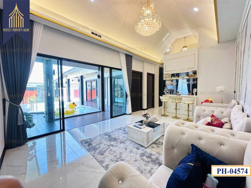 รายละเอียด : บ้านเดี่ยว 1 ชั้น 3 ห้องนอน 4 ห้องน้ำ ห้องครัวไทย, ห้องครัวฝรั่ง, ห้องรับแขก, สระว่ายน้ำส่วนตัว