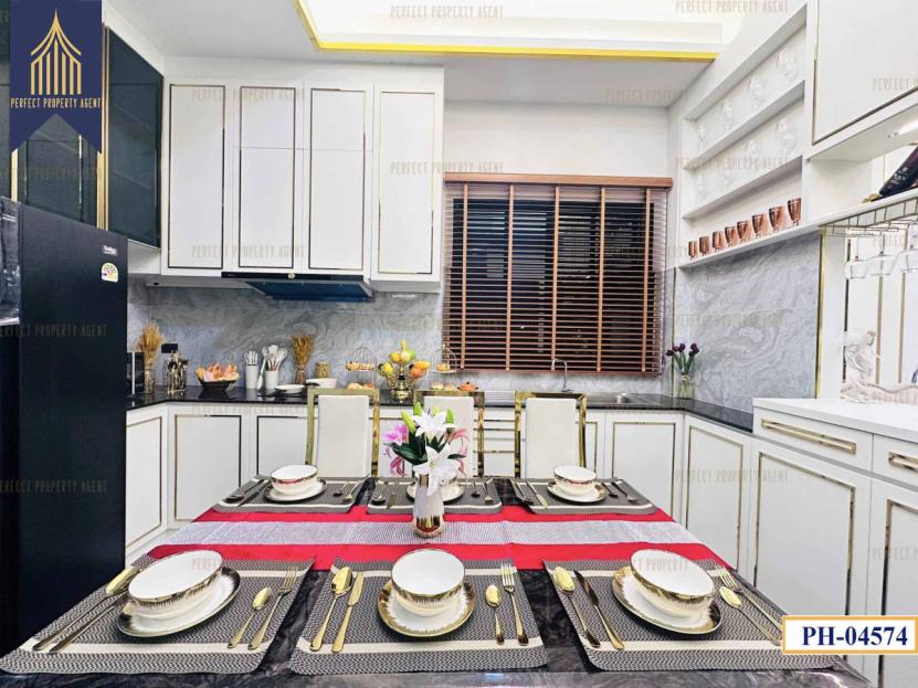 เฟอร์นิเจอร์ : เครื่องใช้ไฟฟ้าครบครัน (แอร์, ทีวี, ตู้เย็น, เครื่องซักผ้า, เตาอบ), เฟอร์นิเจอร์บิ้วอินทั้งหลังทุกห้อง, สระน้ำระบบเกลือ พร้อมปั๊มน้ำและถังสำรองน้ำ, ผ้าม่าน, เคาน์เตอร์บาร์, อ่างอาบน้ำสุดหรู