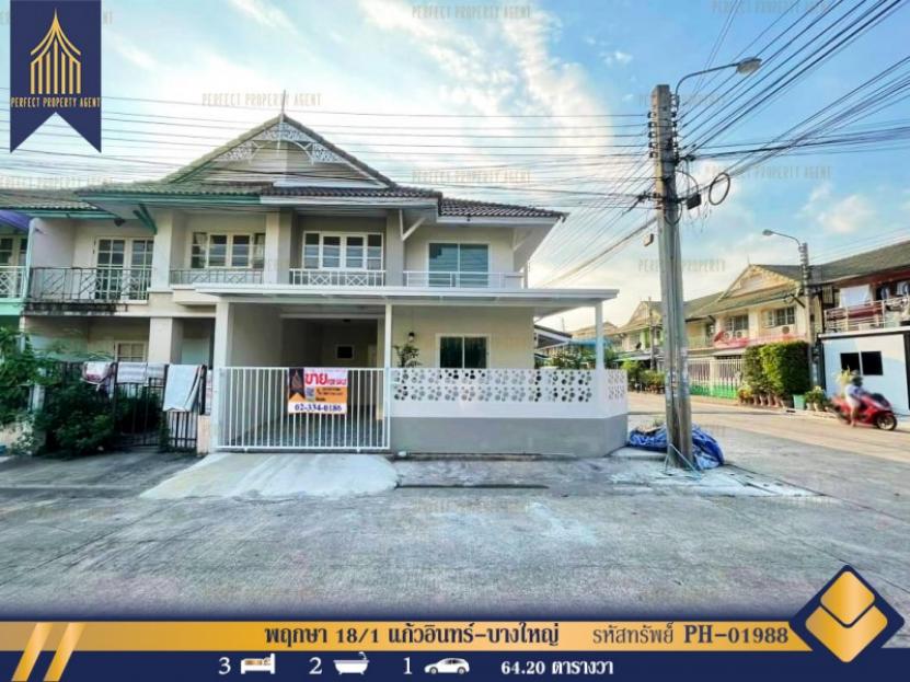 ทาวน์เฮ้าส์ หลังมุม พฤกษา 18/1 ซอยแก้วอินทร์ บางใหญ่ ใกล้เซ็นทรัลเวสต์เกต