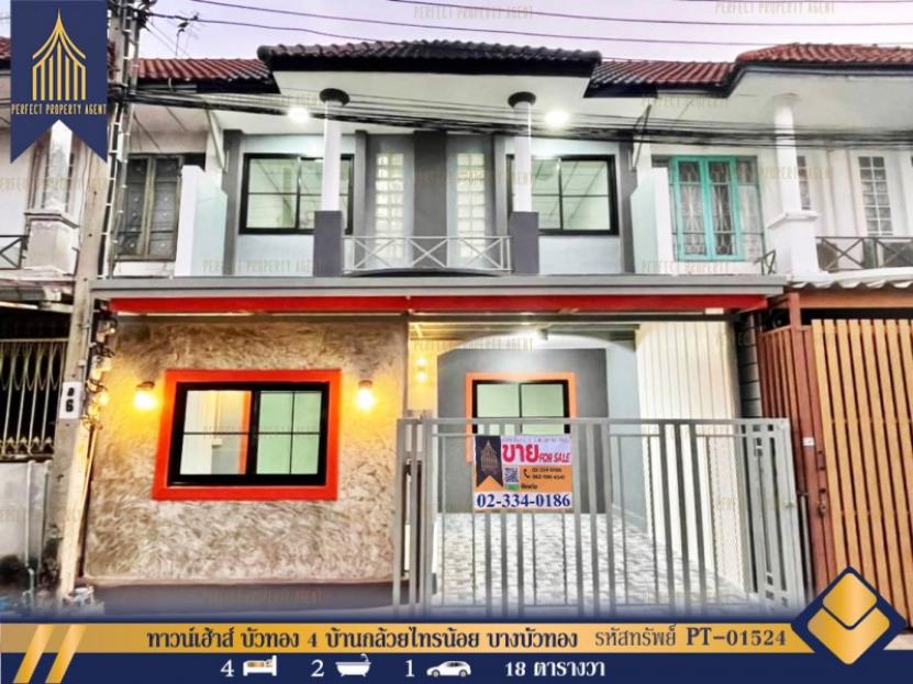 ทาวน์เฮ้าส์ บัวทอง 4 บ้านกล้วยไทรน้อย บางบัวทอง นนทบุรี