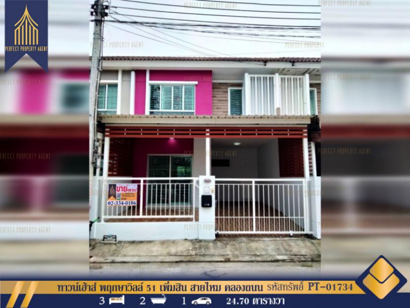ทาวน์เฮ้าส์ พฤกษาวิลล์ 51 เพิ่มสิน สายไหม คลองถนน ตกแต่งพร้อมอยู่