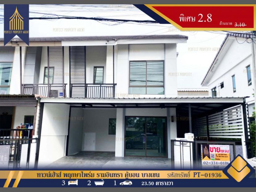 ทาวน์เฮ้าส์ พฤกษาไพร์ม รามอินทรา คู้บอน บางเขน หลังมุม พร้อมอยู่