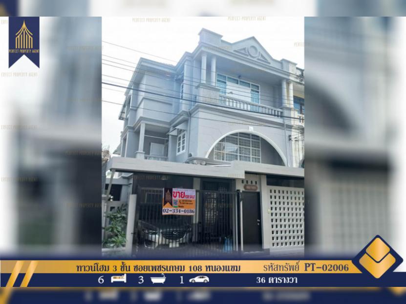 ทาวน์โฮม 3 ชั้น ซอยเพชรเกษม 108 หนองแขม |