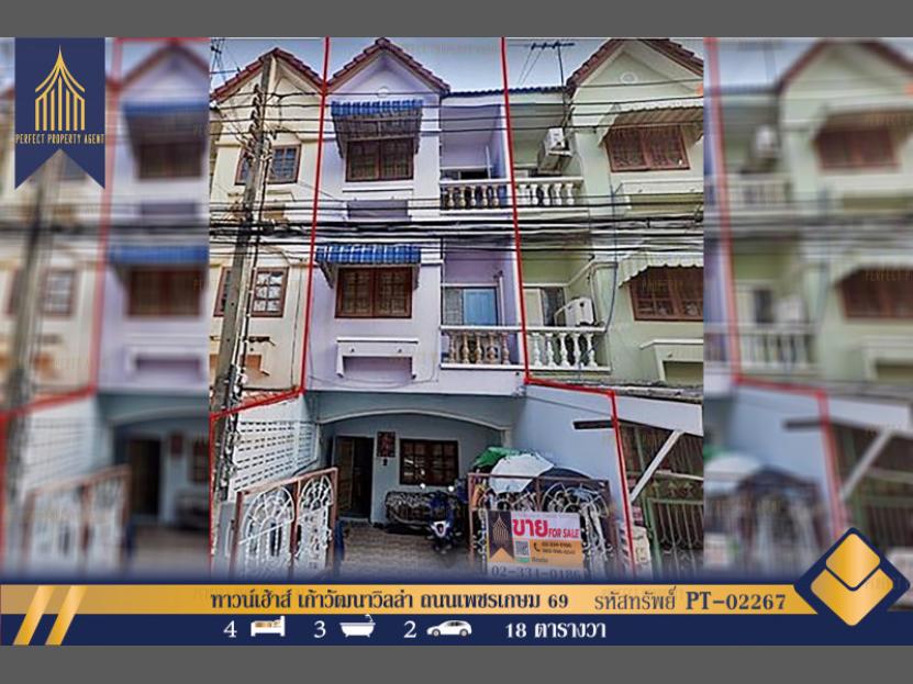 ทาวน์เฮ้าส์ 3 ชั้น เก้าวัฒนาวิลล่า ถนนเพชรเกษม 69 ถนนทวีวัฒนา เดินทางสะดวก ใกล้ห้างสรรพสินค้า