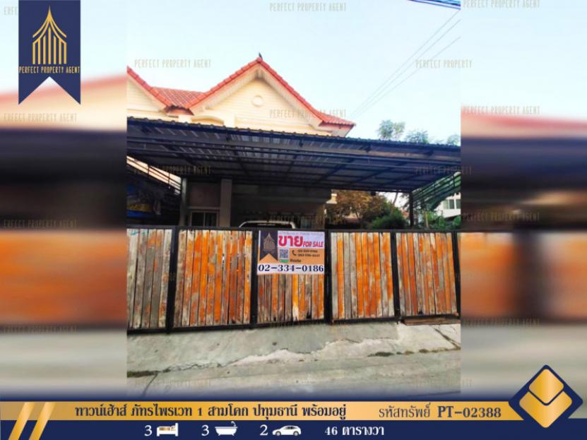 ทาวน์เฮ้าส์ ภัทรไพรเวท 1 สามโคก ปทุมธานี พร้อมอยู่