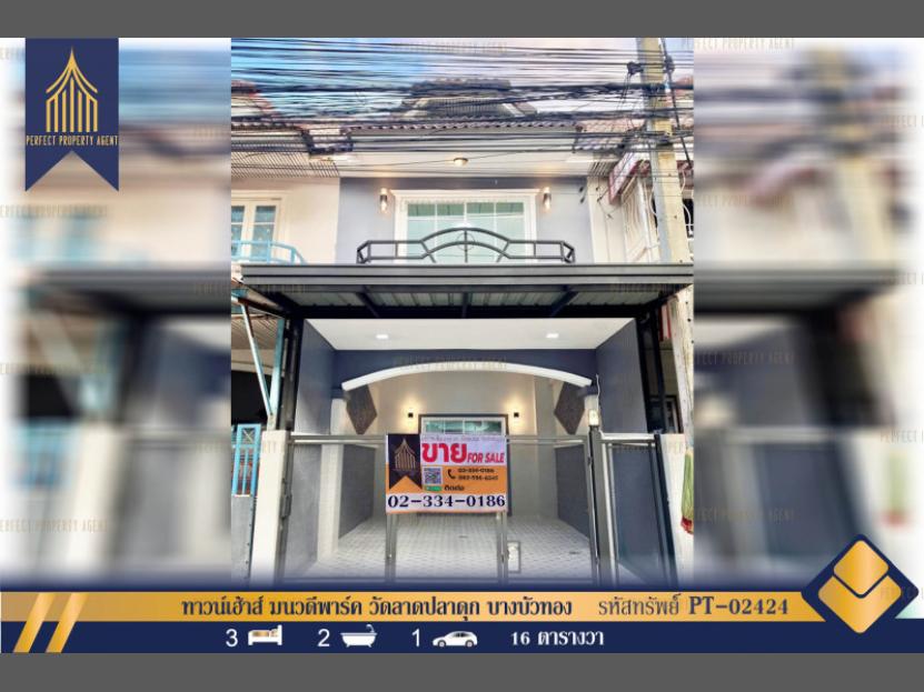 ทาวน์เฮ้าส์ มนวดีพาร์ค วัดลาดปลาดุก บางบัวทอง พร้อมอยู่