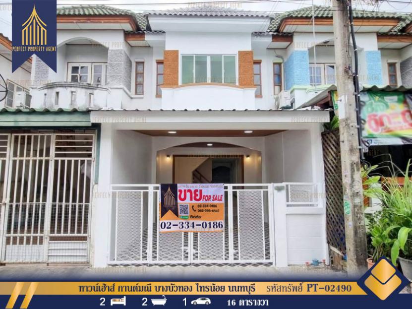 ทาวน์เฮ้าส์ กานต์มณี บางบัวทอง ไทรน้อย นนทบุรี พร้อมอยู่ตกแต่งใหม่ ใกล้ MRTคลองบางไผ่