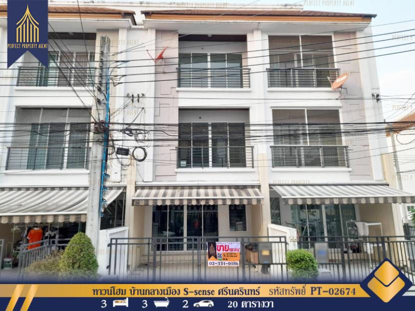 ทาวน์โฮม บ้านกลางเมือง S-sense ศรีนครินทร์ สภาพใหม่ ใกล้รถไฟฟ้าสาย สีเหลือง