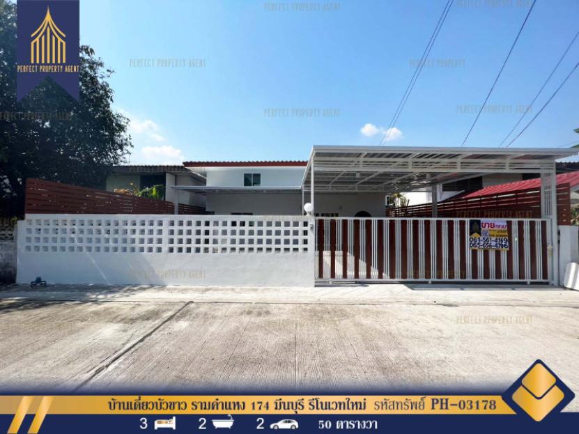 บ้านเดี่ยวบัวขาว รามคำแหง 174 มีนบุรี ใกล้สถานีรถไฟฟ้าสายสีส้ม รีโนเวทใหม่ ฟรีโอน