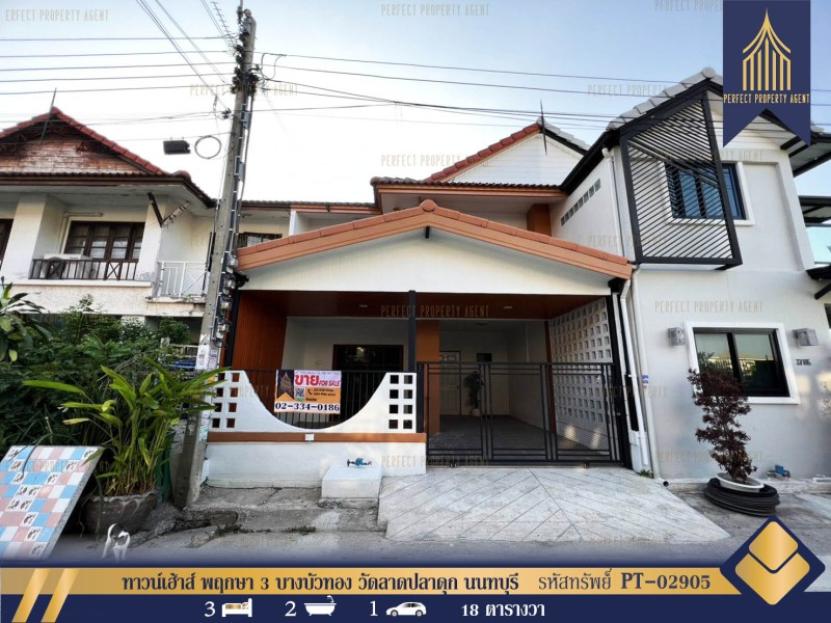 ทาวน์เฮ้าส์ พฤกษา 3 บางบัวทอง วัดลาดปลาดุก นนทบุรี ทำเลดีพร้อมอยู่