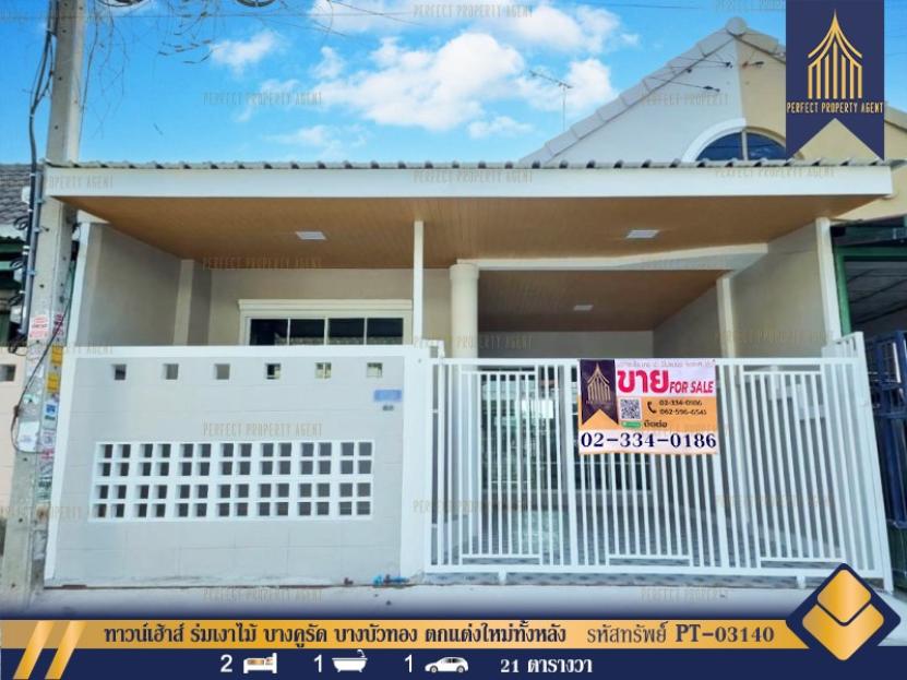 ขาย ทาวน์เฮ้าส์ ร่มเงาไม้ บางคูรัด บางบัวทอง ตกแต่งใหม่ทั้งหลัง