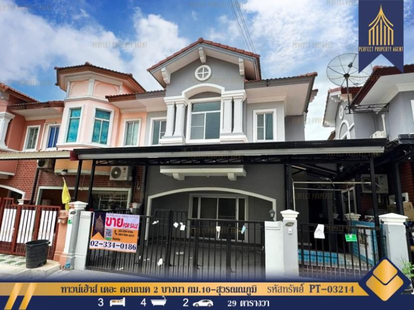จุดเด่น : ทาวน์เฮ้าส์ บางนากม.11 ต่อเติมเยอะ 3 ห้องนอน 4 ห้องน้ำ 2 จอดรถในบ้าน หน้าบ้านได้อีก 1 คัน