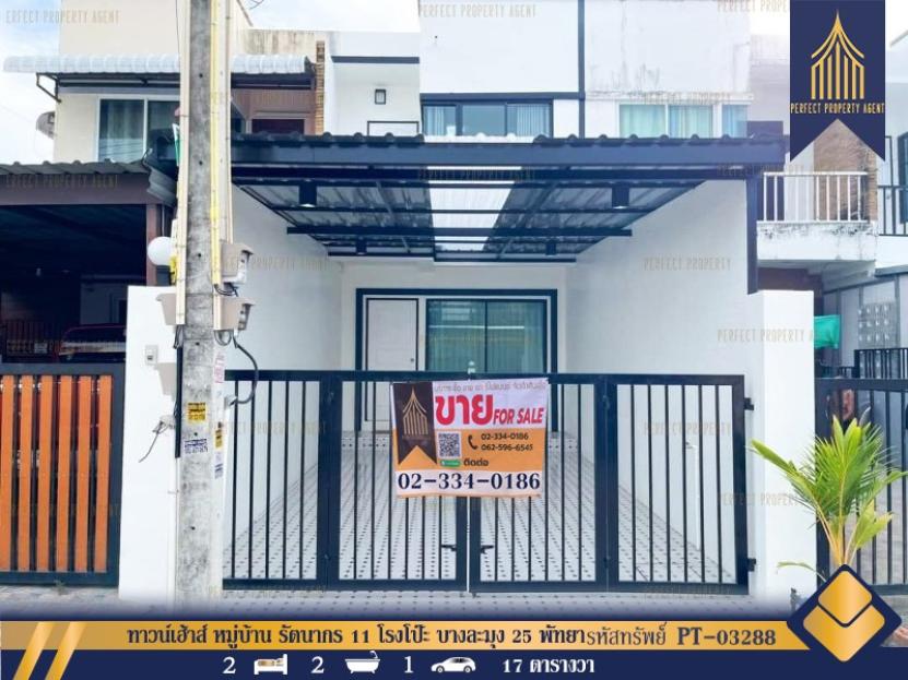 ทาวน์เฮ้าส์ หมู่บ้าน รัตนากร 11 โรงโป๊ะ บางละมุง 25 พัทยา ตะเคียนเตี้ย พร้อมเฟอร์นิเจอร์