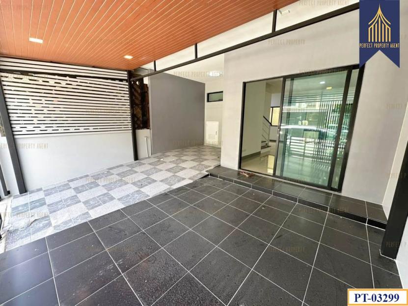 ทาวน์เฮ้าส์หน้ากว้าง6เมตร ใกล้สนามบินสุวรรณภูมิ สวยพร้อมอยู่ ปูกระเบื้องหน้าบ้านพร้อมโครงหลังคาปูไม้ระแนงสวยงาม |