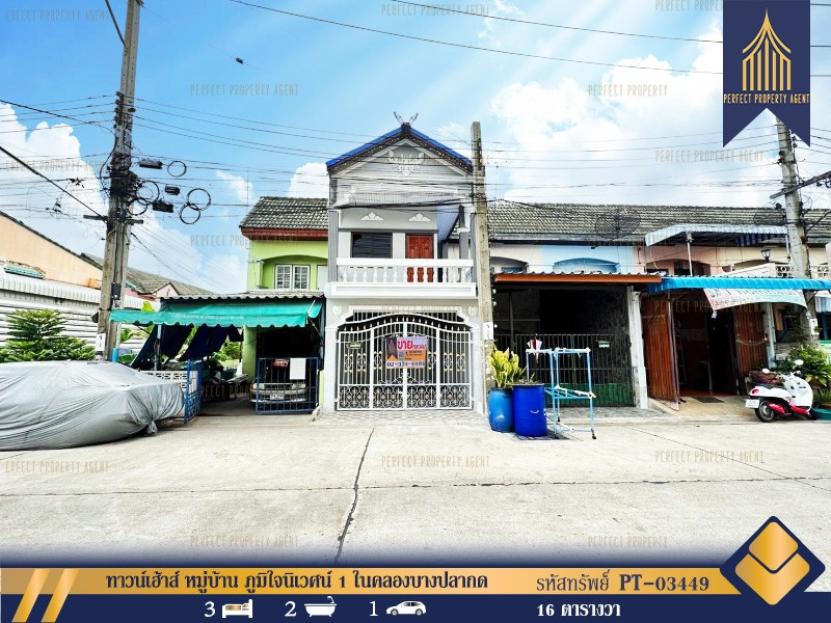 ทาวน์เฮ้าส์ หมู่บ้าน ภูมิใจนิเวศน์ 1 ในคลองบางปลากด พระสมุทรเจดีย์ แถมแอร์ ปั๊มน้ำ