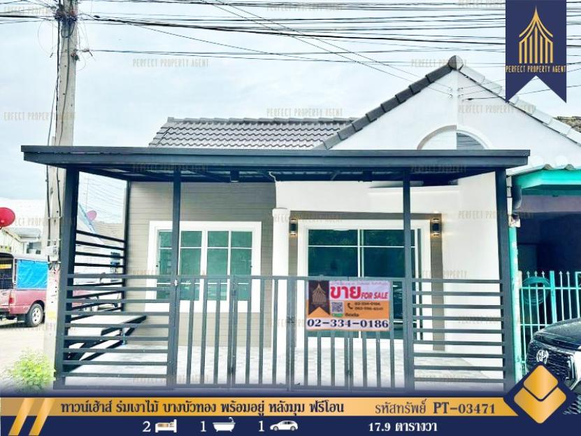 ทาวน์เฮ้าส์ ร่มเงาไม้ บางบัวทอง พร้อมอยู่ หลังมุม ฟรีโอน แต่งใหม่