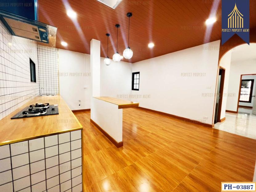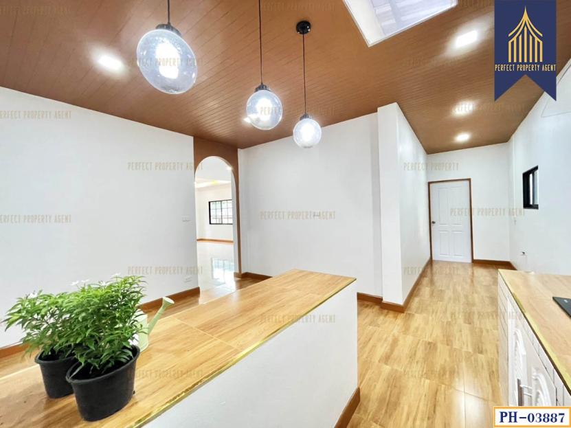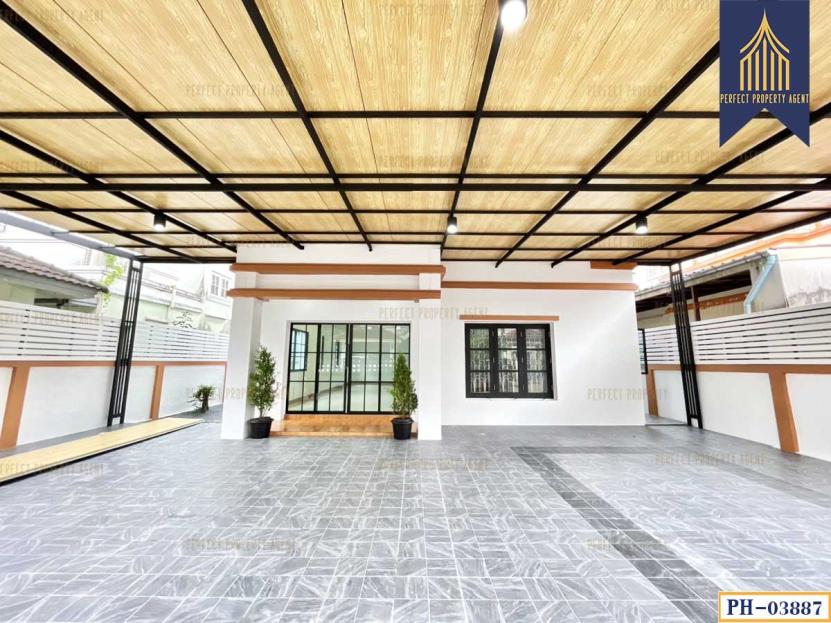 จุดเด่น : ตกแต่งใหม่พร้อมอยู่, ครัวต่อเติมใหม่, ลงเสาเข็มและหลังคาโรงรถกว้างเต็มพื้นที่
