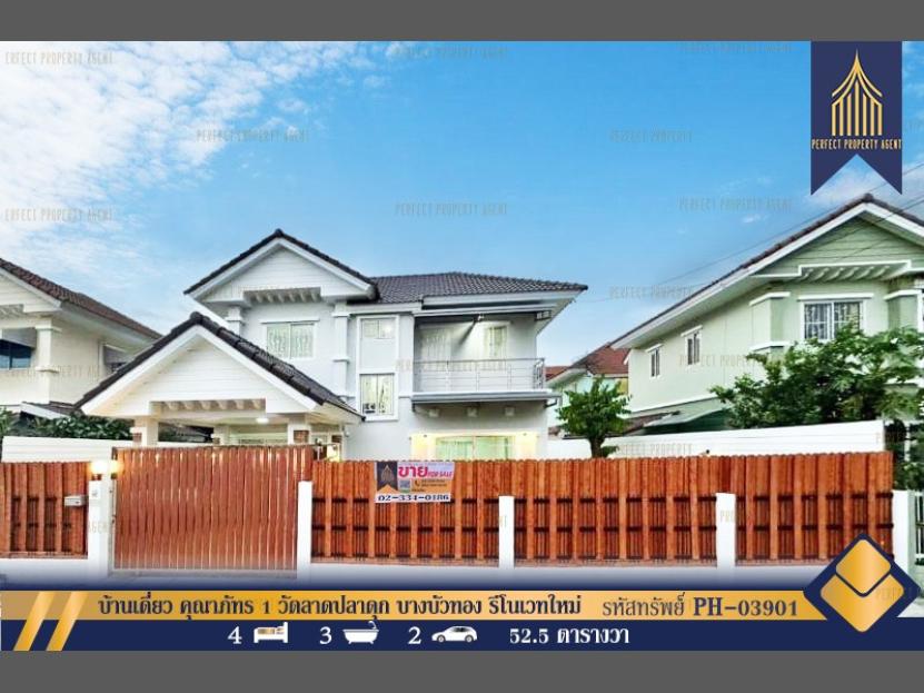 บ้านเดี่ยว คุณาภัทร 1 วัดลาดปลาดุก บางบัวทอง รีโนเวทใหม่ทั้งหลัง