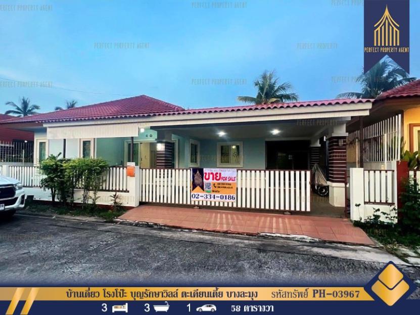 ขายบ้านเดี่ยว โรงโป๊ะ บุญรักษาวิลล์ ตะเคียนเตี้ย พัทยา บางละมุง แถมเครื่องปรับอากาศ