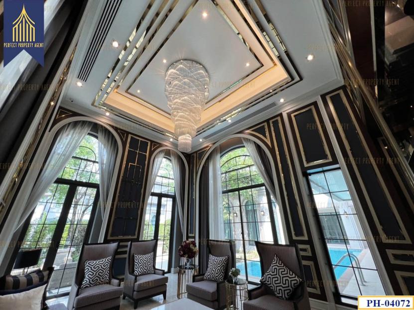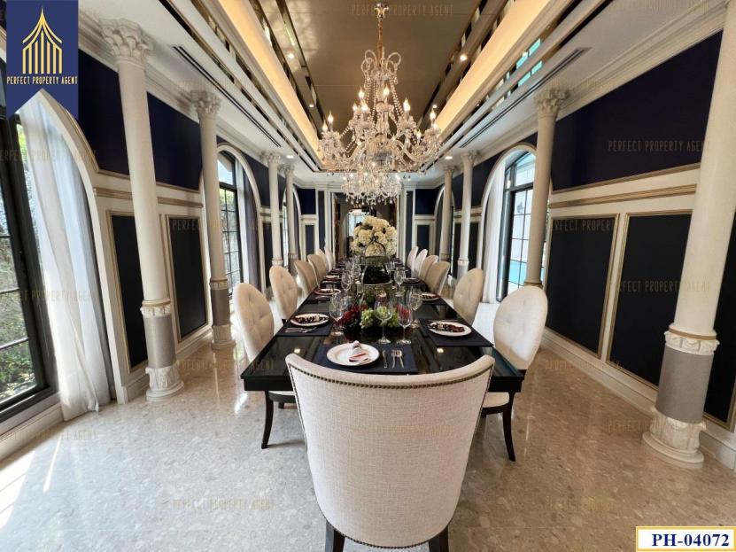 เฟอร์นิเจอร์ : เฟอร์นิเจอร์ทั้งหลัง อาทิ โต๊ะทานข้าวขนาด14 ที่นั่ง/แอร์/กล้องวรจรปิด/ชุดบิ้วท์อินทั้งหลัง/โซฟาชุดใหญ่/สระว่ายน้ำ