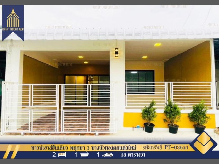 ขาย ทาวน์เฮาส์ชั้นเดียว หมู่บ้านพฤกษา 3 บางบัวทอง ตกแต่งใหม่ทั่งหลังราคาเหมาะสม