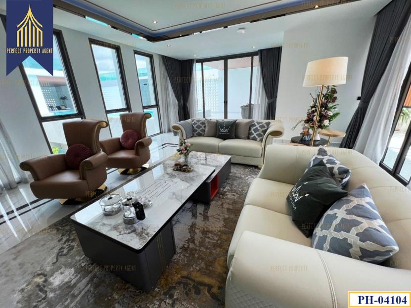 บ้านเดี่ยวใหม่ Pool Villa เจ้าของไม่เคยเข้าอยู่ สภาพใหม่สวย ทันสมัย ตบแต่งหรูหรา(Luxury)พร้อมห้องโถ่งรับแขกขนาดใหญ่ เคาเตอร์บาร์ ห้องเก็บไวน์ ลิฟท์แก้ว สระว่ายน้ำJacuzzi /Fitness /Gardenกลางบ้าน /ห้องนอนมาสเตอร์ 3ห้อง Walk-in Closets พร้อมเฟอร์นิเจอร์แบบจัดเต็ม บริเวณชั้น3 เป็นดาดฟ้า สามารถจัดปาร์ตี้ได้ ด้วยพื้นที่404 ตร.ม ภายในตัวบ้านสูงโปร่ง3-5 เมตร
