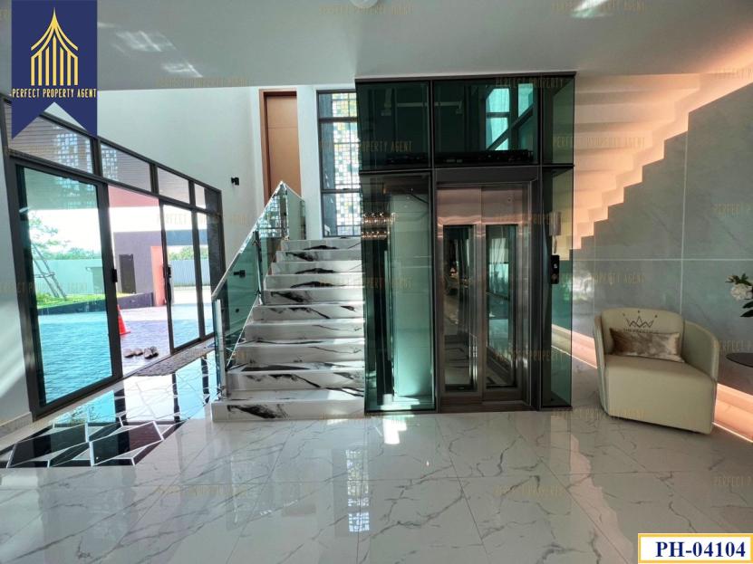 หรูหรา(Luxury)พร้อมห้องโถ่งรับแขกขนาดใหญ่ เคาเตอร์บาร์ ห้องเก็บไวน์ ลิฟท์แก้ว