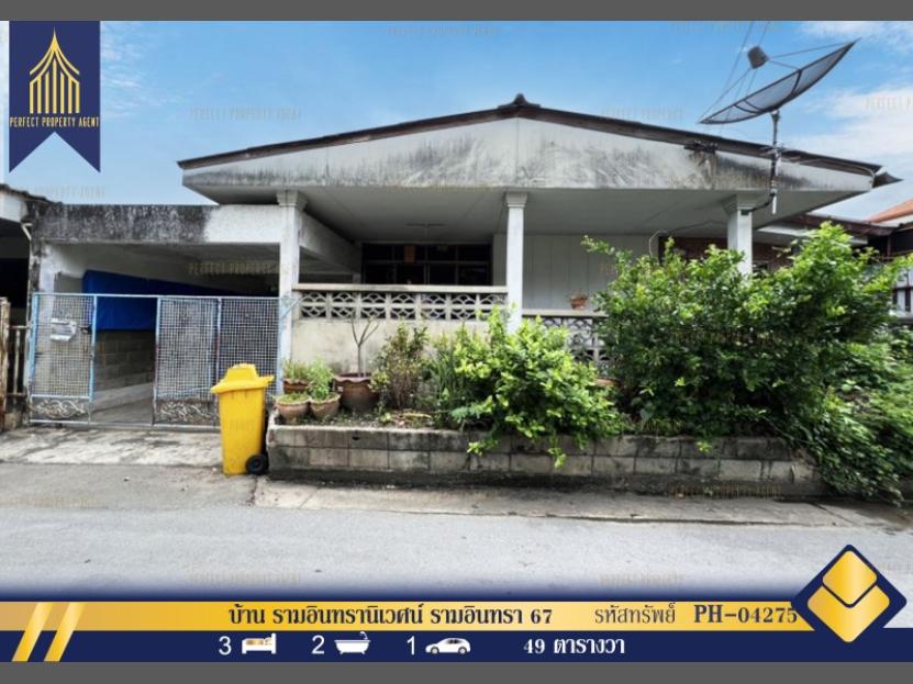 จุดเด่น : บ้านชั้นเดียว รามอินทรา67 พื้นที่ 49 ตร.ว ทำเลดี ใกล้ BTS ขายตามสภาพ