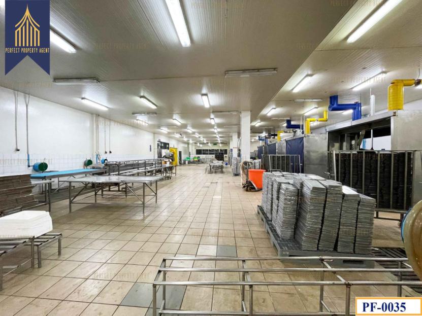 | ห้องเย็น 4 ห้อง (ขนาด 17x17เมตร/ห้อง) รับน้ำหนักได้ห้องละ 300 ตัน โกดัง ขนาดพื้นที่ 44x168 = 7,500 ตารางเมตร โรงอาหาร ขนาดพื้นที่ 43x45 = 2,000 ตารางเมตร โรงผลิต ไฟ3เฟส หม้อแปลง 2,000kpa ห้อง LAB ทดลอง ที่เก็บน้ำ แยกเป็นสัดส่วน บ่อบำบัดน้ำเสีย อย |