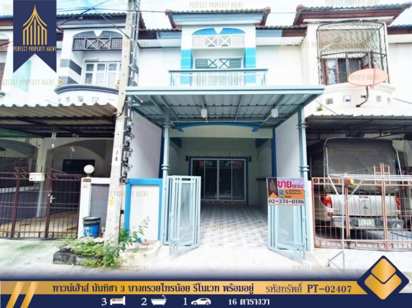 ทาวน์เฮ้าส์ นันทิชา 3 บางกรวยไทรน้อย รีโนเวท พร้อมอยู่