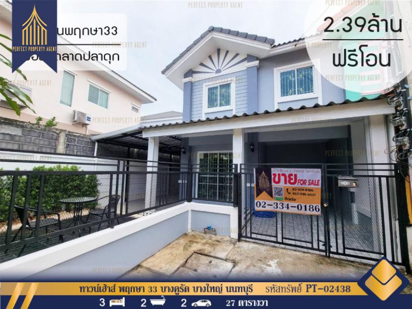ทาวน์เฮ้าส์ พฤกษา 33 บางคูรัด บางใหญ่ นนทบุรี หลังมุมตกแต่งใหม่สวยพร้อมอยู่