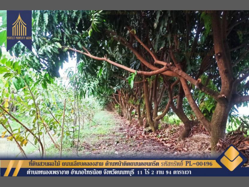 ที่ดินสวนผลไม้ ถนนเลียบคลองสาม ด้านหน้าติดถนนคอนกรีต หนองเพรางาย ไทรน้อย นนทบุรี