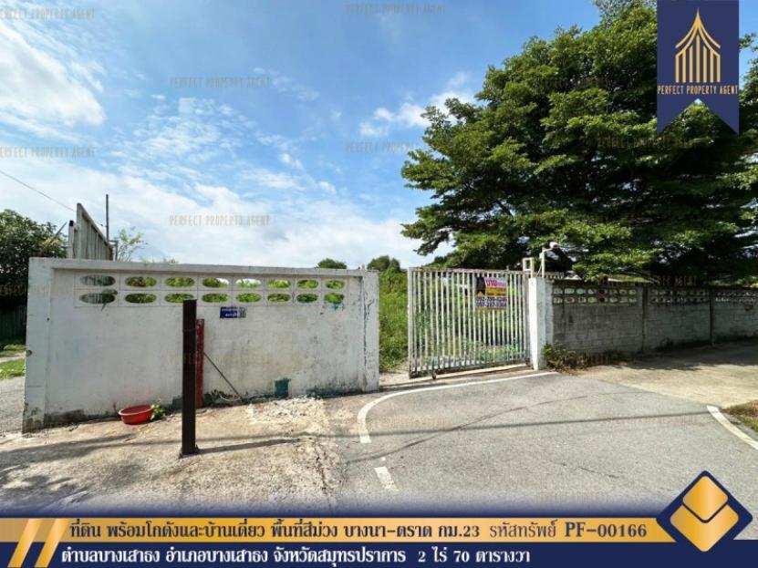 ขายที่ดิน พร้อมโกดังและบ้านเดี่ยว พื้นที่สีม่วง ต่ำกว่าทุน ถนนบางนา-ตราด กม.23 บางเสาธง สมุทรปราการ