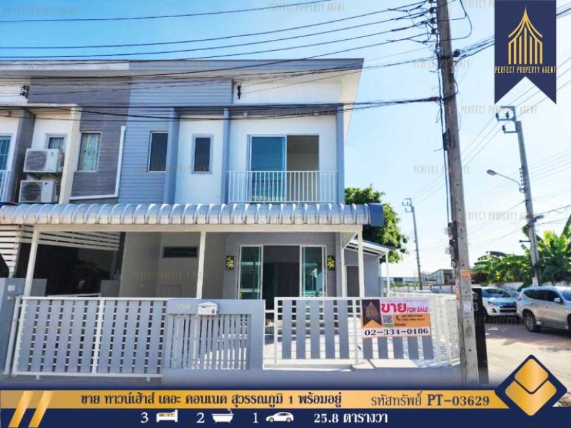 | ทาวน์เฮ้าส์ พร้อมอยู่ ต่อเติมเต็มครบ หลังมุมสวย ถนนหน้าบ้านกว้าง ใกล้สนามบินและAirport Link |