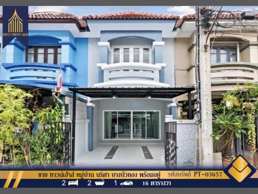 ขาย ทาวน์เฮ้าส์ นริศา บางบัวทอง พร้อมอยู่ราคาย่อมเยาว์เดินทางสะดวกสบายใกล้ห้างสรรพสินค้า
